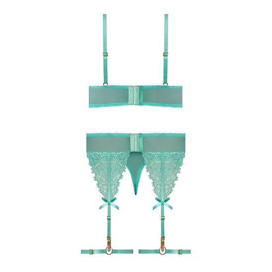 Magic Silk Caribbean Crush Demi Bra & Thong with Garter Set Aqua Glow S/M