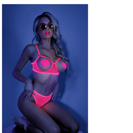 Fantasy Lingerie Glow Sweet Escape Open-Cup Cage Bra & Crotchless Neon Pink Panty M/L