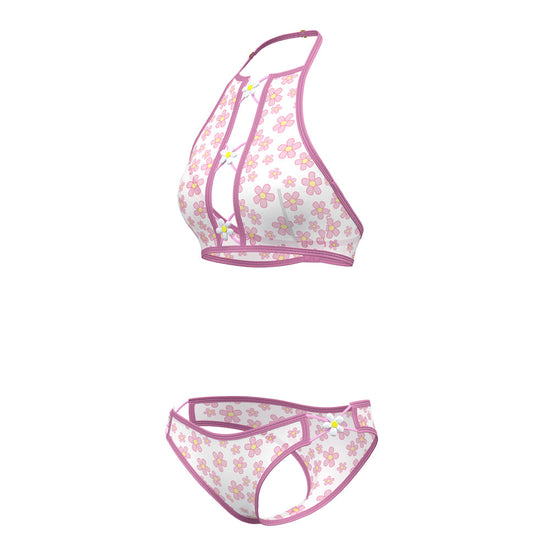 Magic Silk Daisy Halter Bralette & Panty Set Daisy Print L/XL