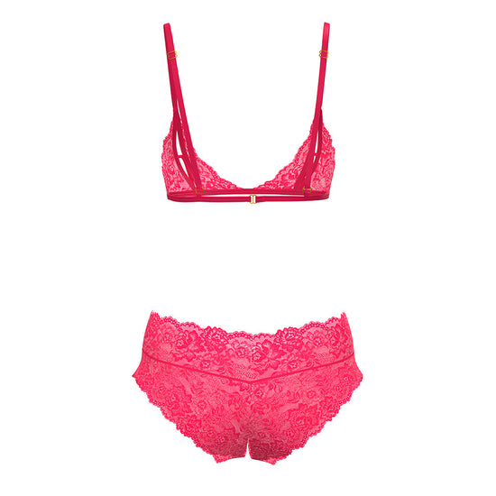 The Diva Pink hue is a bold statement of confidence, perfect for intimate evenings, boudoir shoots, or a cheeky surprise with your partner. This two-piece set is crafted to glide over your curves, offering a comfortable feel while keeping the tease front and center.