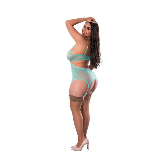 Magic Silk Soft Petals Basque and Thong Set Aqua Queen Size