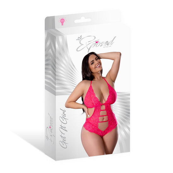Illuminate the doorway to your fantasies with a lingerie piece that’s as daring as it is flattering. The Get It Girl Halter Teddy is a statement in motion—a halter-style silhouette that frames your shoulders, a plunging neckline that draws the eye, and an exposed midriff that keeps the tease at center stage. From Fantasies Boutique, this Diva Pink queen-size teddy is designed to empower confident, curvy bodies with a look that’s both romantic and provocative.