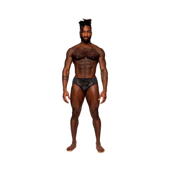 Male Power Sassy Lace Bikini Solid Pouch Black L