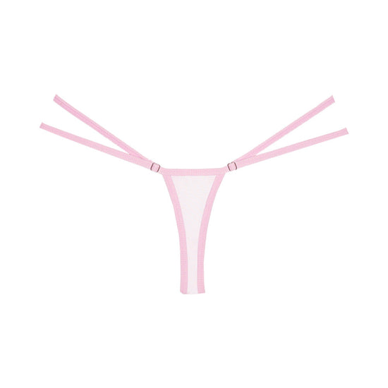 For the good girl who likes to be naughty... Lace front thong with a hint of mesh in back. Adjustable double waist straps with silver hoops.