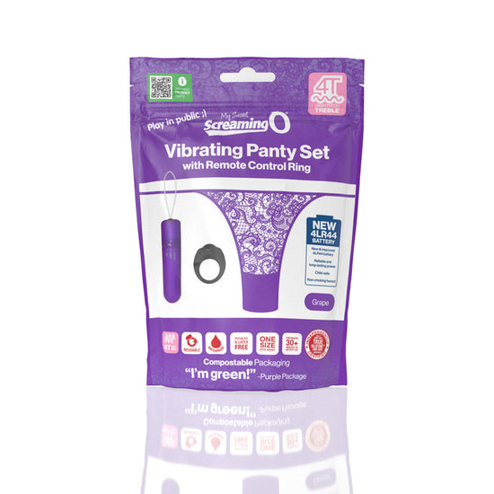 Experience discreet, powerful pleasure with the Screaming O My Secret 4T Panty Vibe from Fantasies Boutique. This compact, 4T treble-style tickle and tease vibrating bullet slips into the side pocket of a lace panty and stays put for hands-free stimulation on your sweet spot. Perfect for adventurous couples, it pairs with a discreet remote control that doubles as an ordinary finger ring and works up to 50 feet away.