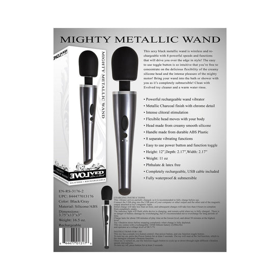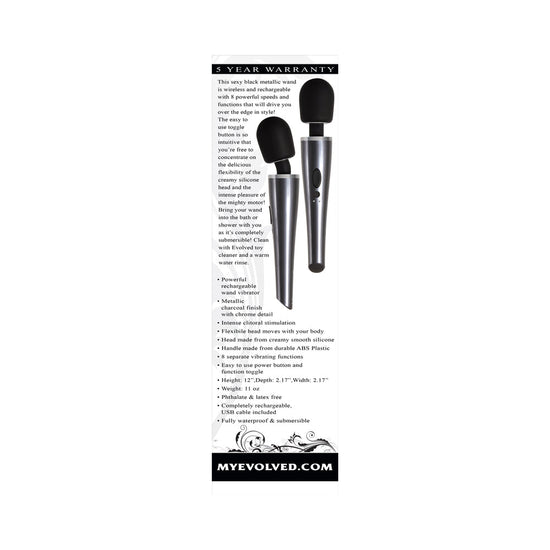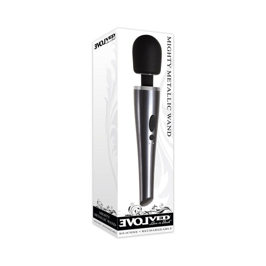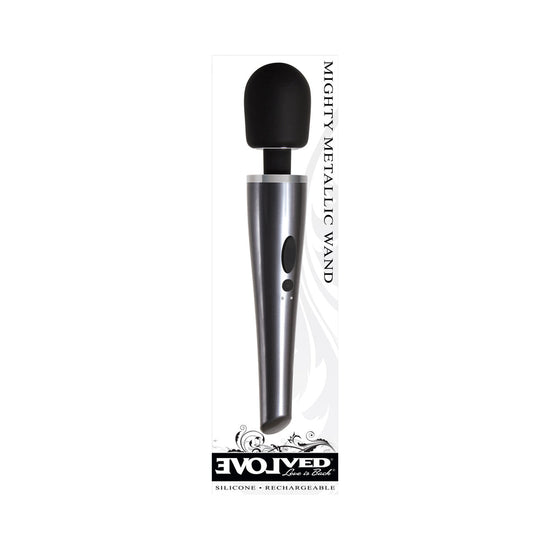 Evolved Mighty Metallic Wand Rechargeable Silicone Wand Vibrator Chrome/Black