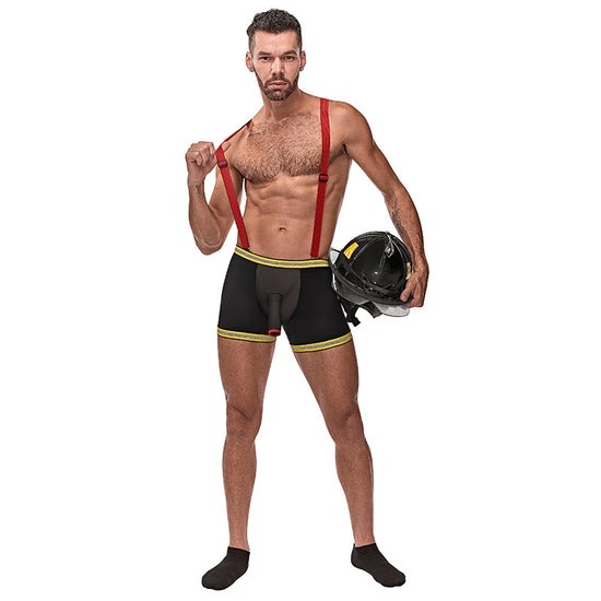 Turn up the heat with the Hose Me Down firefighter-themed costume from Male Power's Costumes collection. In sleek black (Blk LX), this bold ensemble is designed for daring nights of fantasy and flirtation, delivering a perfect blend of tease and comfort.