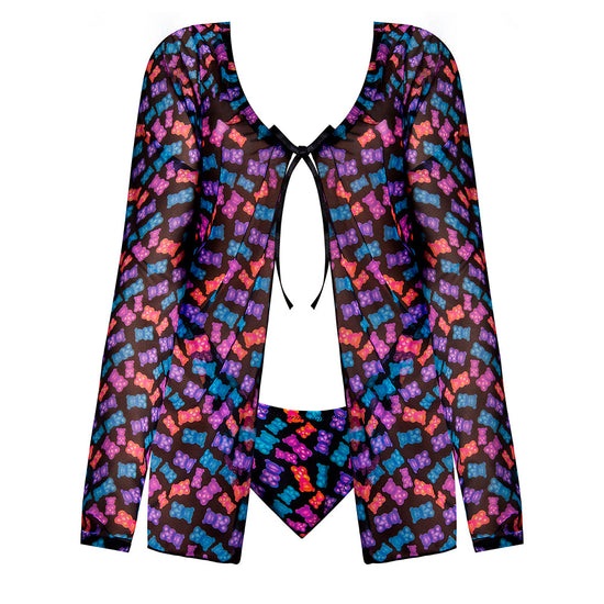 Magic Silk Hazy Dayz Tie Front Jacket & Thong Set — Gummy Bears (S/M)