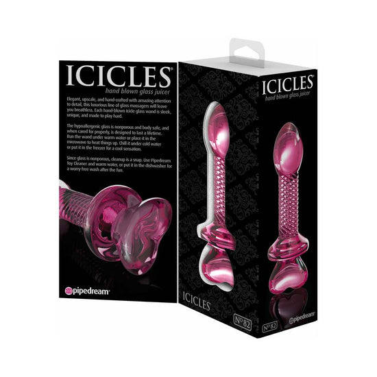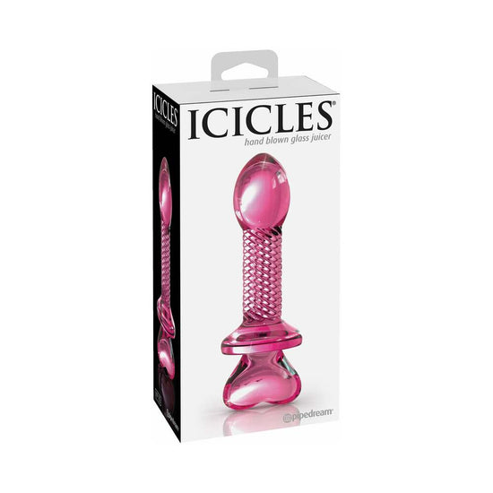 Pipedream Icicles No. 82 Glass Juicer Textured Dildo With Heart-Shaped Base Pink