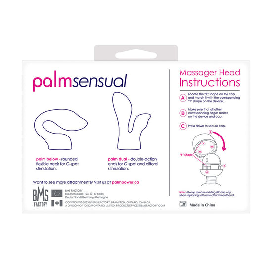 These 100% silicone attachments add more versatility and options to your PalmPower massager. The PalmSensual set includes 2 attachments when used with PalmPower will help to alleviate your stress and provide and invigorating massage on areas that are usually overlooked!
