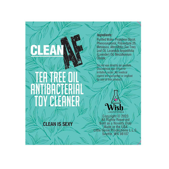 Discover a sparkling clean for your toys with Clean AF Spray Tea Tree, a premium toy-cleaning solution from Fantasies Boutique. Formulated with Tea Tree oil, it gently frees your personal pleasure products from germs and bacteria, so you can explore with confidence and peace of mind.