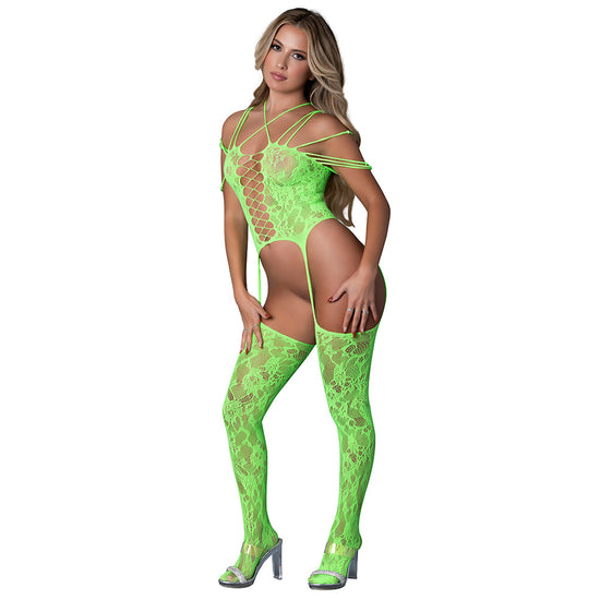 Turn up the heat and light up the night with the Neon Lime Seamless Bodystocking from Exposed by Magic Silk. This ultra-stretchy gartered catsuit is designed to skim every curve, offering a smooth, second-skin silhouette that’s as comfortable as it is provocative. Neon lime color adds a playful pop that stands out in photos, flirtatious nights, and lingerie displays alike.