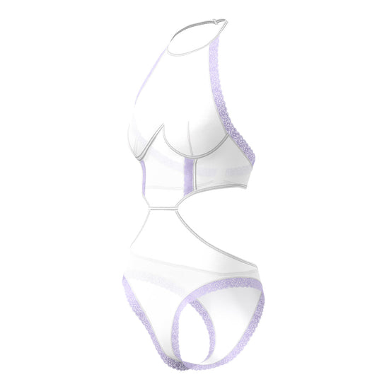 Magic Silk Sheer Passion Halter Teddy White/Lavender L/XL