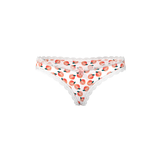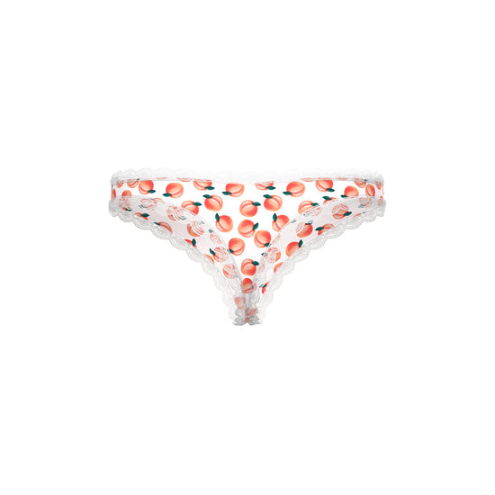 Indulgence knows no bounds with our Sweet Treats Crotchless Thong with Lube. Crafted in magic-silk fabric, this thong glides on as smoothly as a moonlit stream. Delicate lace trim and playful fruit prints whisper forbidden delights to those craving new experiences. The split crotch adds a daring invitation for shared secrets and spontaneous moments.