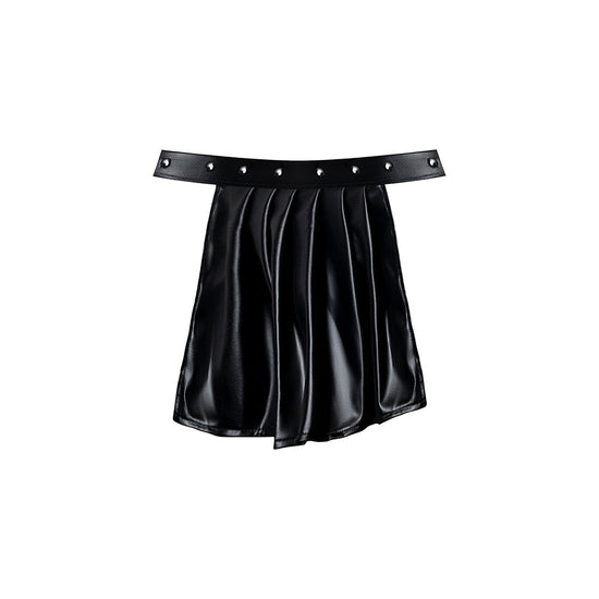 From the Fetish collection by Male Power Underwear, this men’s faux leather skirt jock is a fierce fusion of bold style and fetish-inspired design. The striking mini gladiator skirt features pleated detailing in front with a full jock underneath, delivering both drama and support.