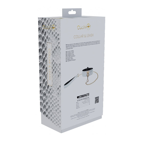 Turn up the heat with the Florence Collection Collar and Leash by Ouch! — a stylish, confidence-boosting duo designed for unmistakable presence in the boudoir. This set balances everyday comfort with sturdy construction, so you stay in total control during intimate moments. Crafted from bonded leather and finished with iridescent hardware, it delivers a high-fashion look that’s as eye-catching as it is durable. Perfect for couples exploring new levels of play, this white collar and leash elevates both style and sensation.